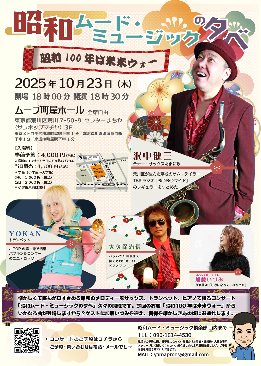 デンワまたはメールでのご予約は「昭和ムード・ミュージック倶楽部 山内」まで